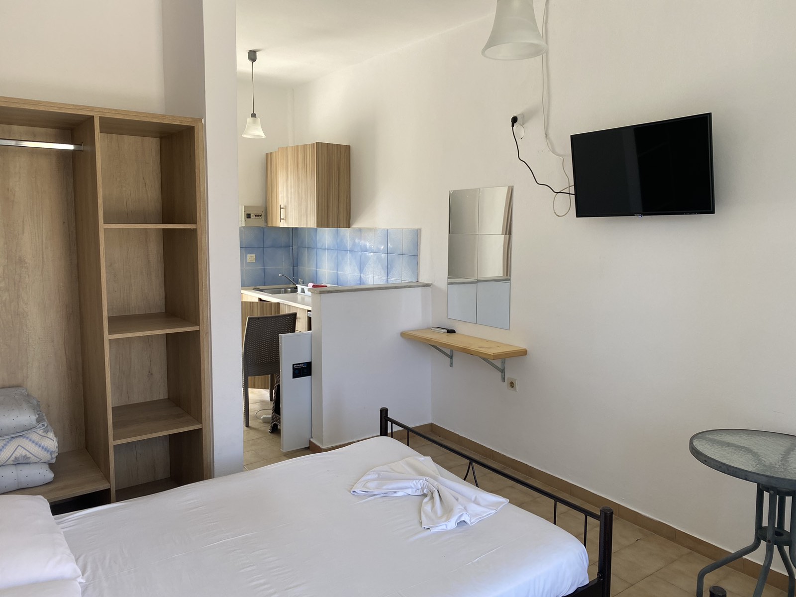 Studio-Double room with Balcony. -2 singles or 1 double. -At the heart of Laganas. -Close to the beach.€ 60 per night -